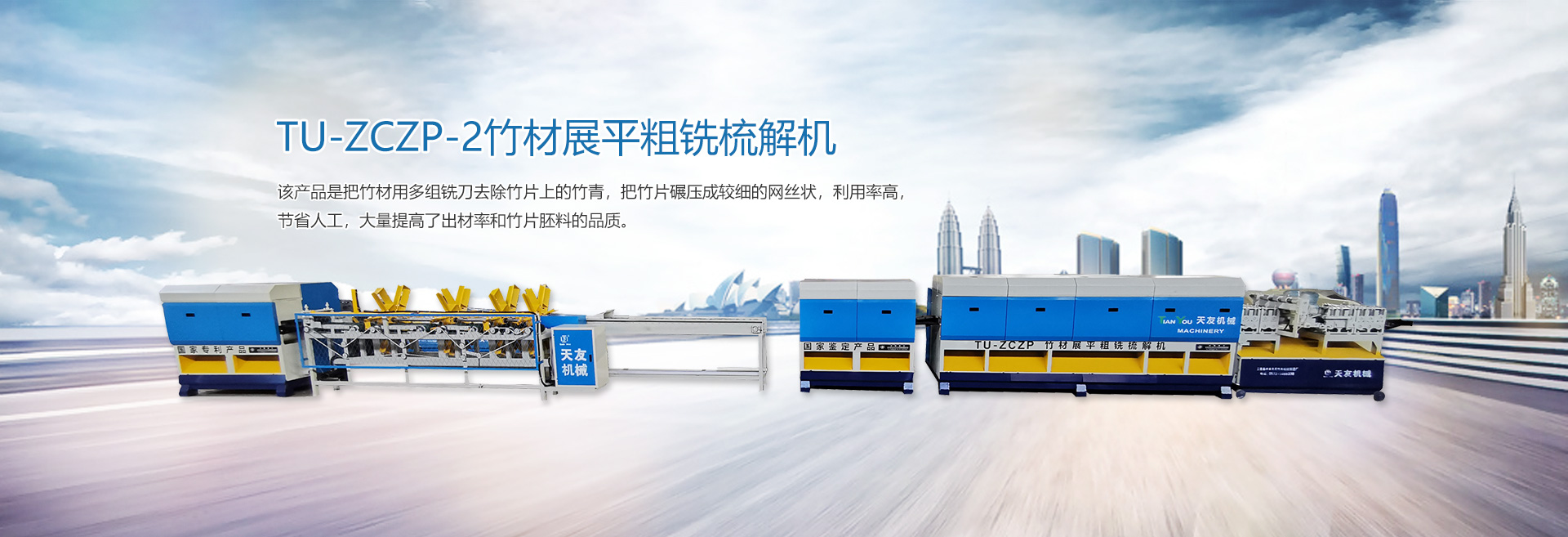 本廠生產(chǎn)的“天友”牌竹木兩大系列機(jī)械產(chǎn)品,品種齊全,包括(竹木機(jī)械、重竹設(shè)備、竹筷成套機(jī)械、牙簽成套機(jī)械、刨篾機(jī)、包裝機(jī)、竹地板成套設(shè)備、竹涼席成套設(shè)備、砂光機(jī)、破竹機(jī)、拉絲機(jī)、精刨機(jī)、帶節(jié)雙生筷、天削筷機(jī)械等) ,結(jié)構(gòu)新穎,質(zhì)量上乘,以完善的售后服務(wù)體系深受客戶(hù)的好評(píng)。